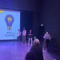 No âmbito da 11.ª edição do projeto Empreendedorismo nas Escolas, promovido pela CIM Região de Leiria, realizou-se hoje a fase de defesa dos projetos finalistas do Concurso Municipal de Ideias de Negócio. O nosso Agrupamento esteve em destaque, tendo conseguido apurar duas ideias entre as oito selecionadas para esta fase final. Os projetos apresentados foram desenvolvidos por alunos das turmas do 9.º ano, sob a coordenação da professora Eduarda Nunes, evidenciando criatividade, espírito crítico e capacidade de inovação.