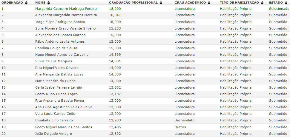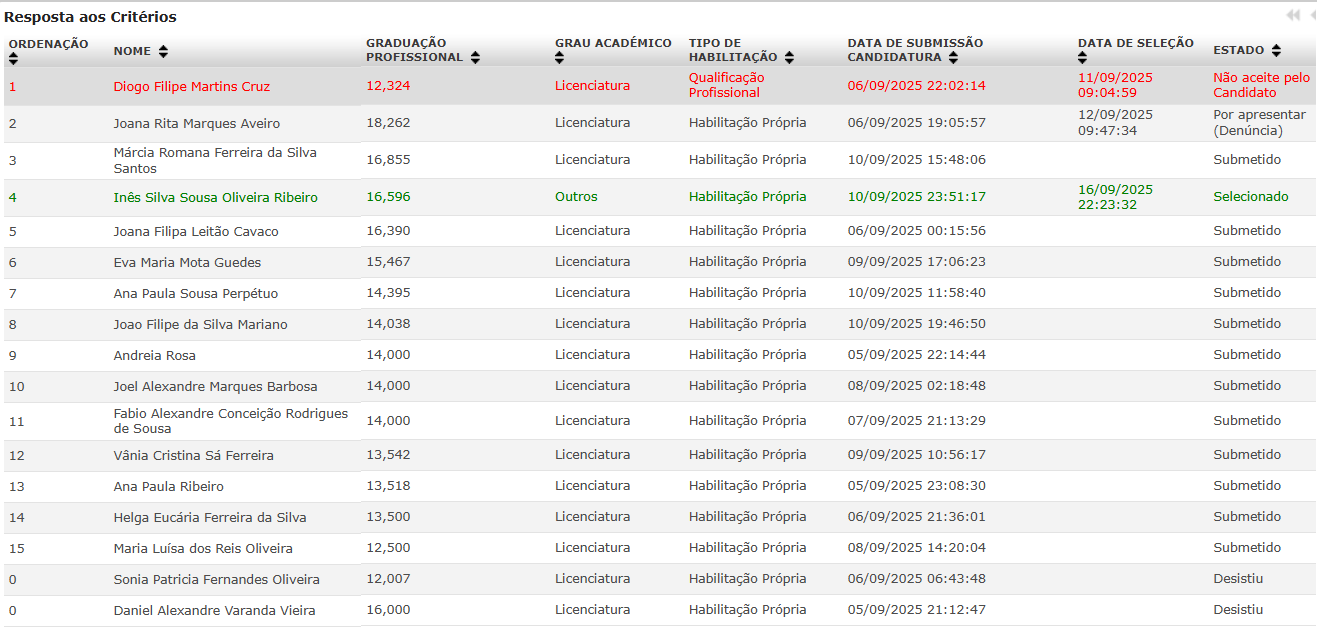 Horário 03 - Grupo 910 - Lista de Graduação e candidato(a) selecionado(a)