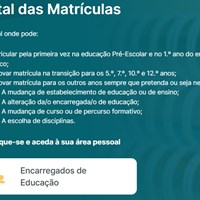 Em conformidade com a legislação em vigor, Despacho n.º 4472-A/2026, de 6 de abril, o período normal de matrícula e sua renovação para a Educação Pré-Escolar e 1.º ano do 1.º Ciclo do Ensino Básico é fixado entre o dia 22 de abril e o dia 1 de junho de 2026.